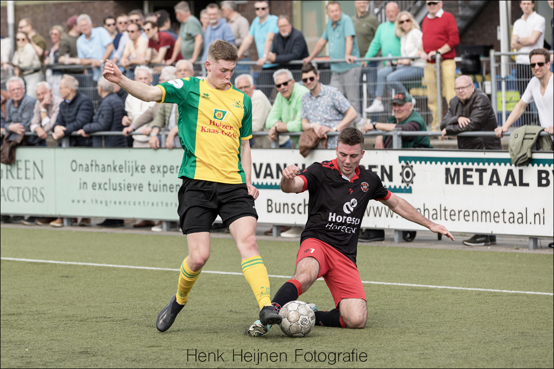 Huizen opent sterk en meteen zet Remco Helms (wat gaan we dié missen!) de bal strak voor en van dichtbij tracht Timo Vos de bal achter doelman De Vogel te werken. De doelman werpt zich met ziel en zaligheid voor de bal en dat biedt Vos te weinig ruimte om de bal langs de doelman te krijgen. Had ook weinig nut gehad, anders dan voor het zelfvertrouwen van onze bedrijvige vleugelspits, want de vlag van de lijnrechter ging al onverbiddelijk omhoog…