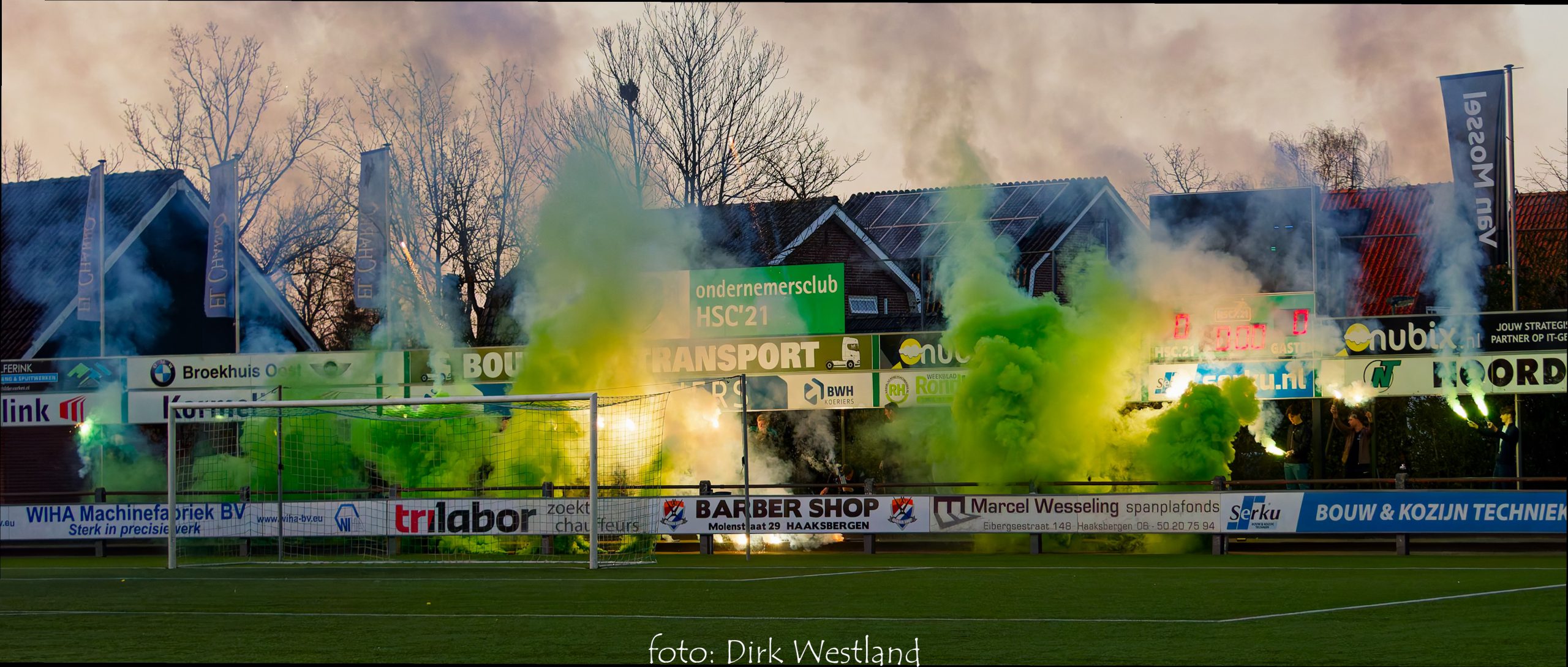 Het is een warme lentedag, maar ik kan er maar matig van genieten. Vandaag staat de degradatiekraker tegen HSC’21 in Haaksbergen op het programma en daarvoor is een aanvangstijd van zes uur ’s avonds uitgekozen. En dan loop je dus de hele dag met een ei in je gat rond te dreutelen tot het eindelijk zover is. Met een rit van dik anderhalf uur laat zo’n aanvangstijdstip weinig ruimte voor een ‘derde helft’ en dat is ook voor mij toch wel een prominent onderdeel van mijn zaterdagbeleving. Voordeel is wel dat je de uitslagen op de andere velden dan voor je hebt en weet wat je te doen staat. Maar eigenlijk wéét Huizen dat al: alleen winst is hier vandaag een optie wil Huizen lekker in het spoor van directe handhaving blijven. Verlies betekent dat HSC’21 over ons heen hopt op de ranglijst en we dus nog een plek zullen zakken.