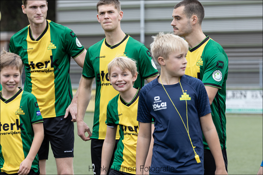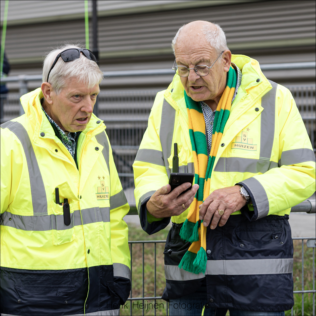 Die sociale instelling blijkt ook als Tim Vrakking even neer gaat met een blessure en Huizen de bal uitspeelt. Onze gasten leveren hem via de inworp weer keurig terug. Een applausje op de tribune waar men al blij is ergens voor te kunnen klappen.