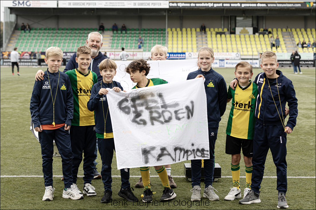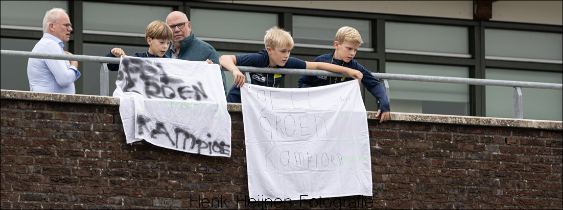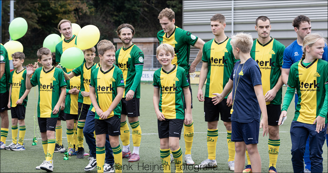 Vandaag is de groen-gele supportersdag. Langs het veld staan die wappermannetjes al te blazen en men is druk met de voorbereidingen. Kinderen lopen rond met grote handtekeningenvellen waarop de krabbels van spelers en staf verzameld kunnen worden. Maar voor mij is nu al het hoogtepunt dat de spelersvrouwen acte de precense geven! Een charmant clubje dames dat gezamenlijk heerlijk aan de bubbels en de oesters zit. Geweldig initiatief en ik hoop dat ze hier een vervolg aan geven. Het geeft toch weer een stukje extra binding en sfeer. Ik hoop de foto die ik vóór en ván de dames maakte nog wel even toegezonden te krijgen, dan plak ik ‘m alsnog in dit verslag! Alvast bij voorbaat mijn dank en ik hoop dat jullie een hele leuke middag beleefd hebben!