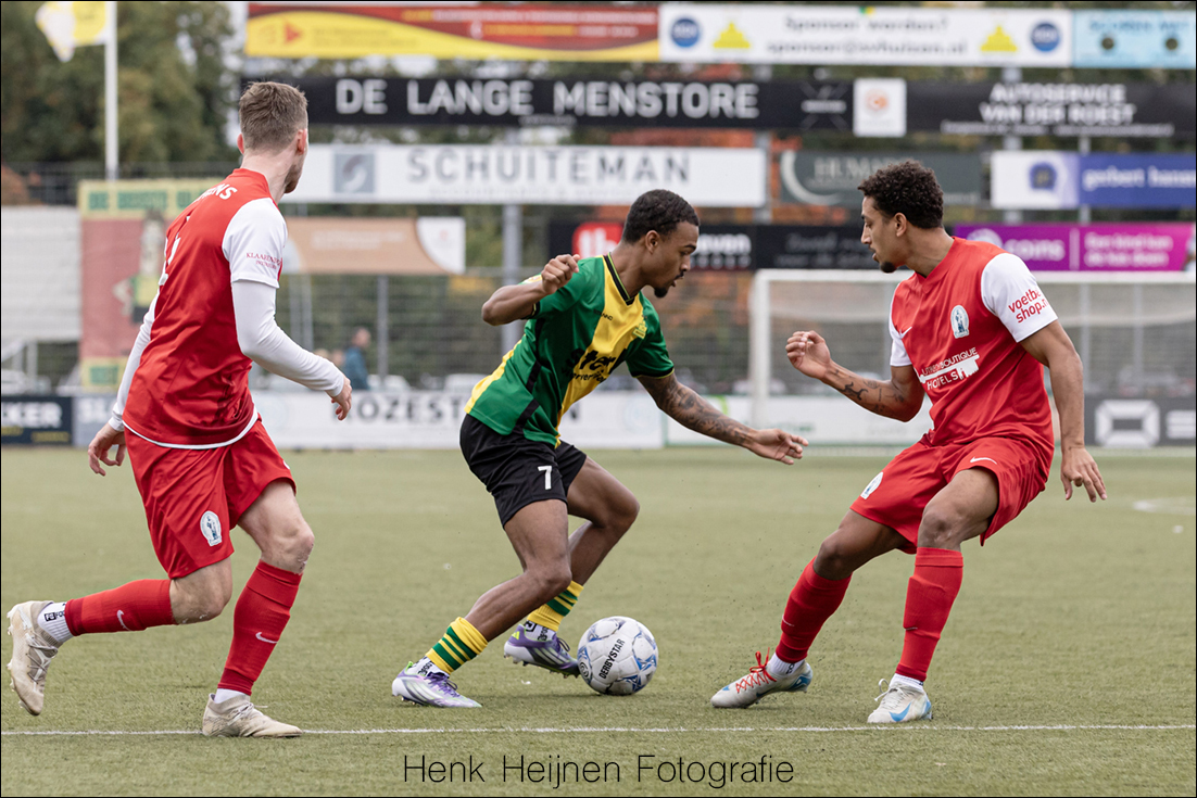 We zijn krap een half uur onderweg als Sergio Kozjak (weer een degelijke rol als vleugelverdediger) een schot van Sel Bastmeier moet blokkeren. Hij doet het met verve.