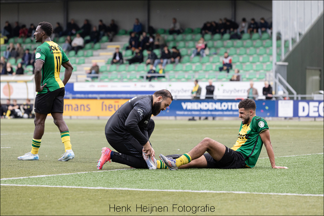 Bijna een uur gespeeld en dan gaat Joshua Lo-Asioe zitten en heeft verzorging nodig. De pijn is hem aan te zien. Voor Rob de Groot het signaal om Dailey Groenewegen aan onze defensie toe te voegen. Josh is geblesseerd, heeft al geel op zak en met een aandringend Hercules is een mannetje extra achterop natuurlijk geen raar idee.