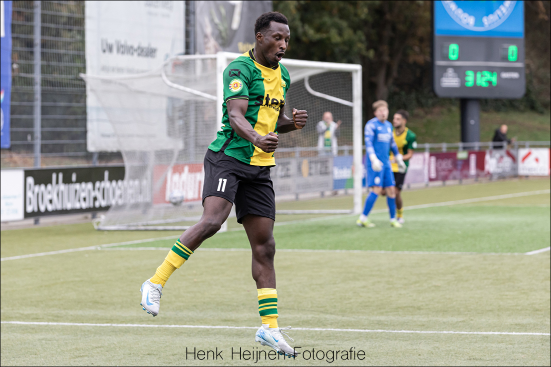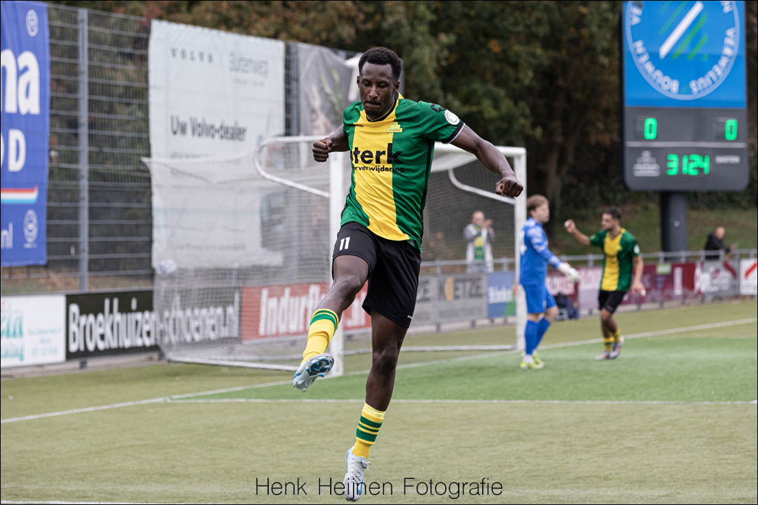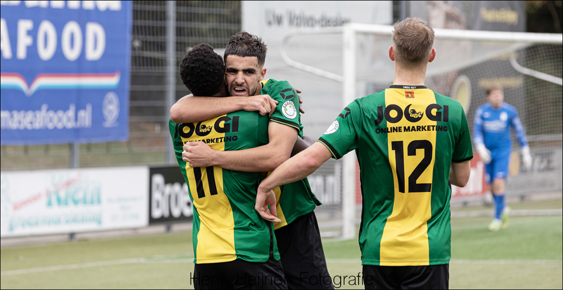 We zitten al in de extra tijd als het allemaal bij Huizen weer als vanouds ‘past’. Saber Charif weet Jaylon te bereiken die zich niet meer laat afstoppen en doelman Gerritsen omspeelt. Een heerlijke actie en ook hij weet dan het verlaten doel vlekkeloos te doorboren: 3 – 0, een ongekende luxe!