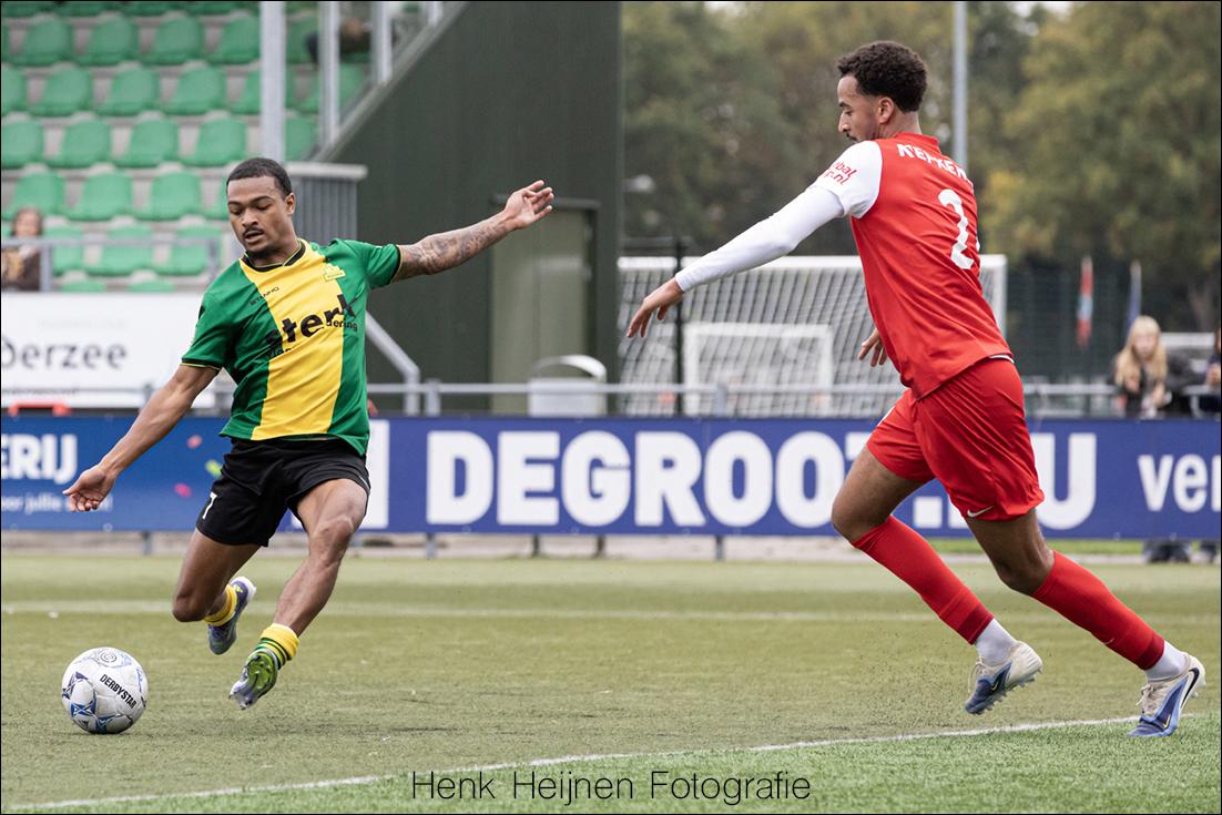 Dan twee minuten Saber Charif die geweldig open draait en meteen een pass geeft die wél aankomt. Jaylon Moi Thuk Shung komt in schietpositie en neemt zijn kansen waar. Helaas is de inzet te slap om Hercules-doelman Steyn Gerritsen te kunnen verontrusten.