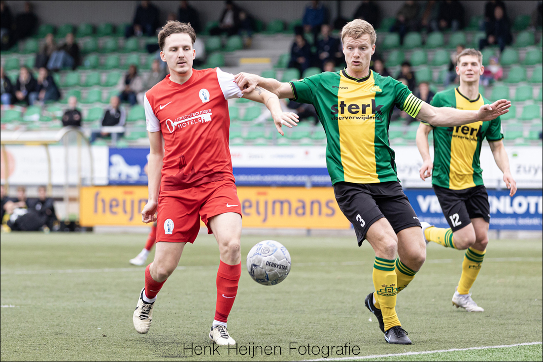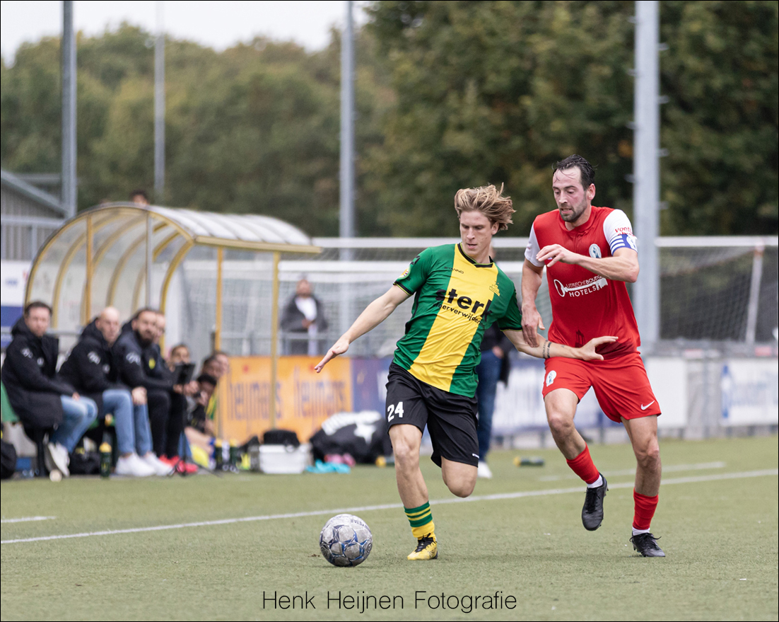 Opnieuw even wat hernieuwde druk van Hercules dat bewonderenswaardig de strijd bleef aangaan. Dat dat niet helemaal van harte ging blijkt wel uit een opstootje dat ontstaat als Artuur Zutterman wat fel een luchtduel met Pim ten Have aangaat. Ten Have kan z’n frustratie niet de baas en grijpt Zutterman beet. Helaas was onze mannetjesputter niet zo slim om zich als een stervende zwaan op het kunstgras te laten vallen en hij reageert met gelijke munt. Opnieuw moet arbiter Drost naar de borstzak grijpen en opnieuw terecht. Geel voor Ten Have én Zutterman…