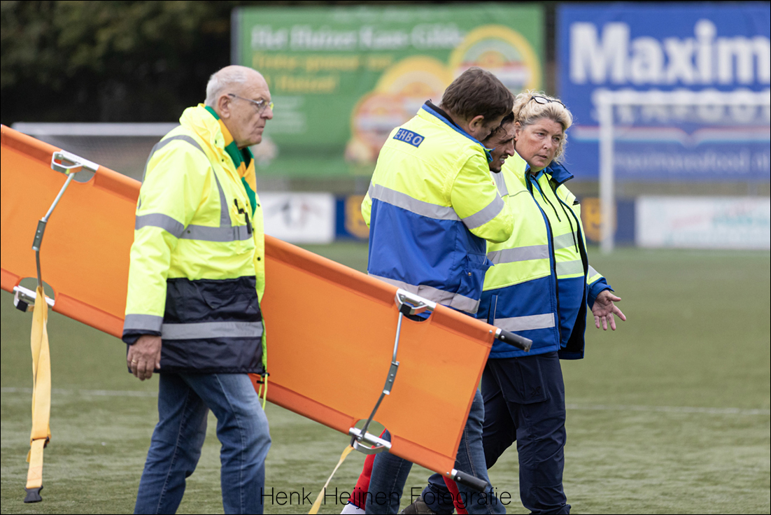 Twisker heeft echter al zijn wissels gebruikt en kan dus niemand meer inbrengen. Hercules moet met tien man verder. Het is wat schril, maar regels zijn nou eenmaal regels. Arbiter Drost voelt dat ook goed aan en ondanks dat het spel geruime tijd stil heeft gelegen blaast hij de wedstrijd af zonder extra tijd bij te trekken. ‘n Uitstekende beslissing!