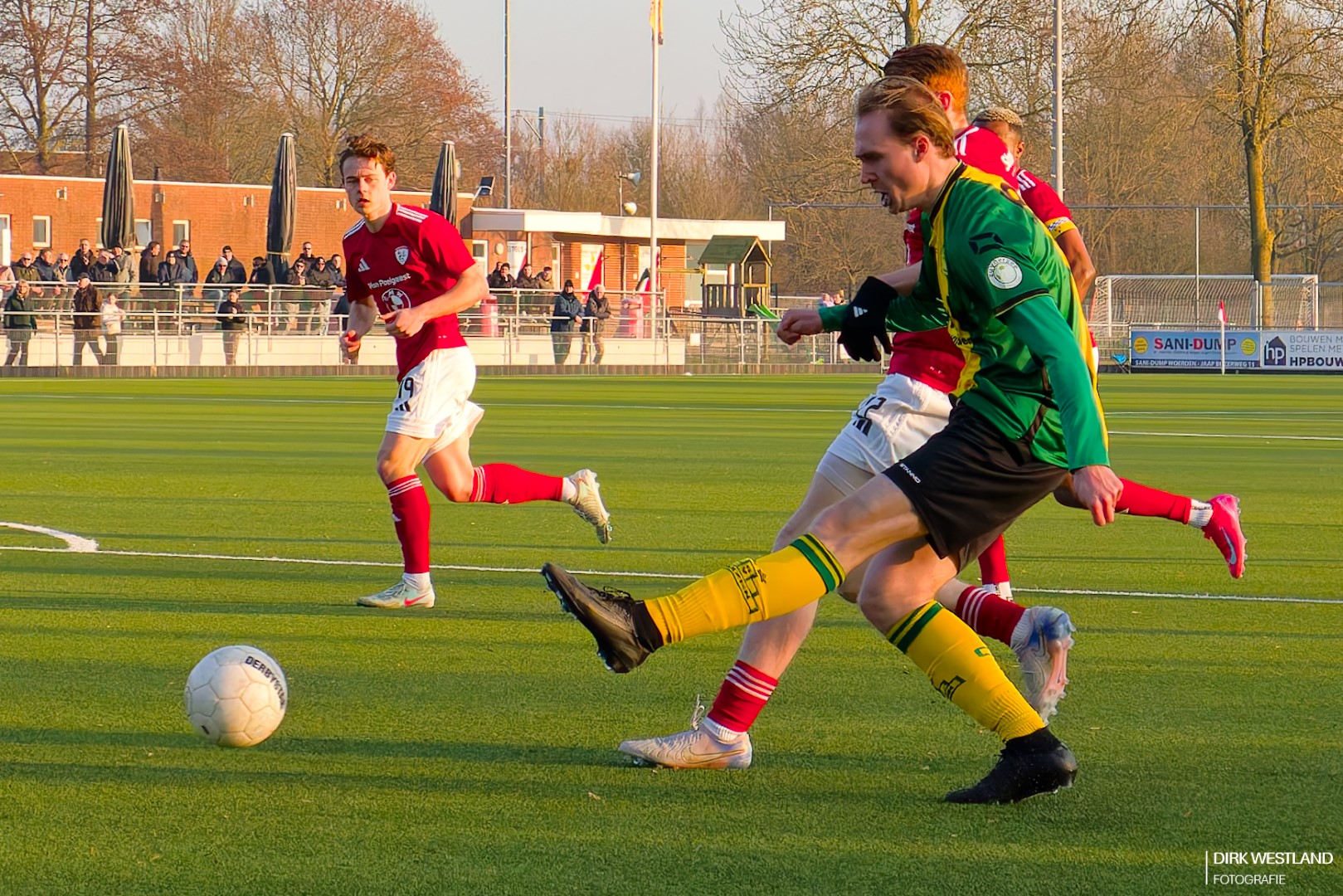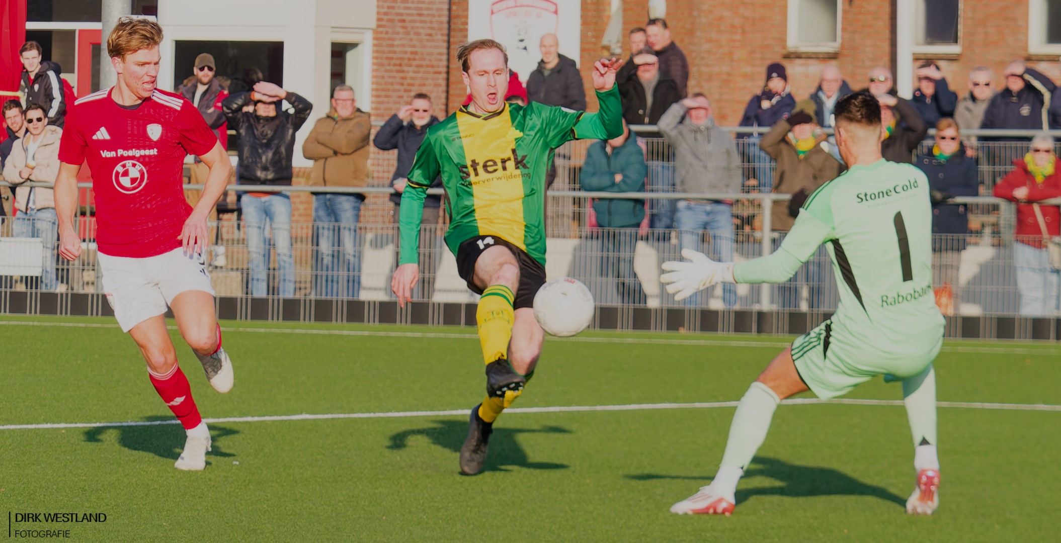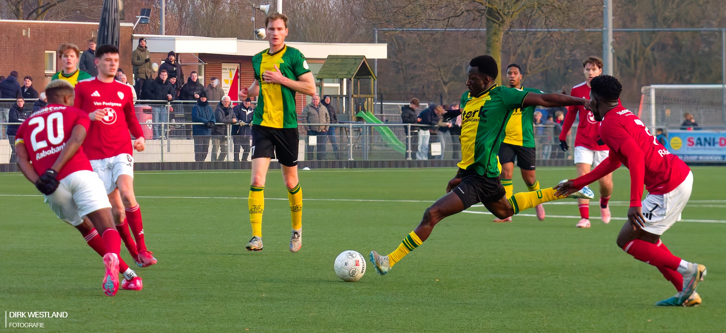 De druk van Sportlust was vóór rust al heftig, maar nu gaat er nog een schepje bovenop. Even paniek achterin als een rare klutsbal van Lutters voor dreiging en Jeroen Lamme voor opluchting zorgt. Het is geen geweldige wedstrijd waar we hier in de snijdende kou naar zitten te kijken, maar de spanning door die 0 – 1 vergoedt veel.