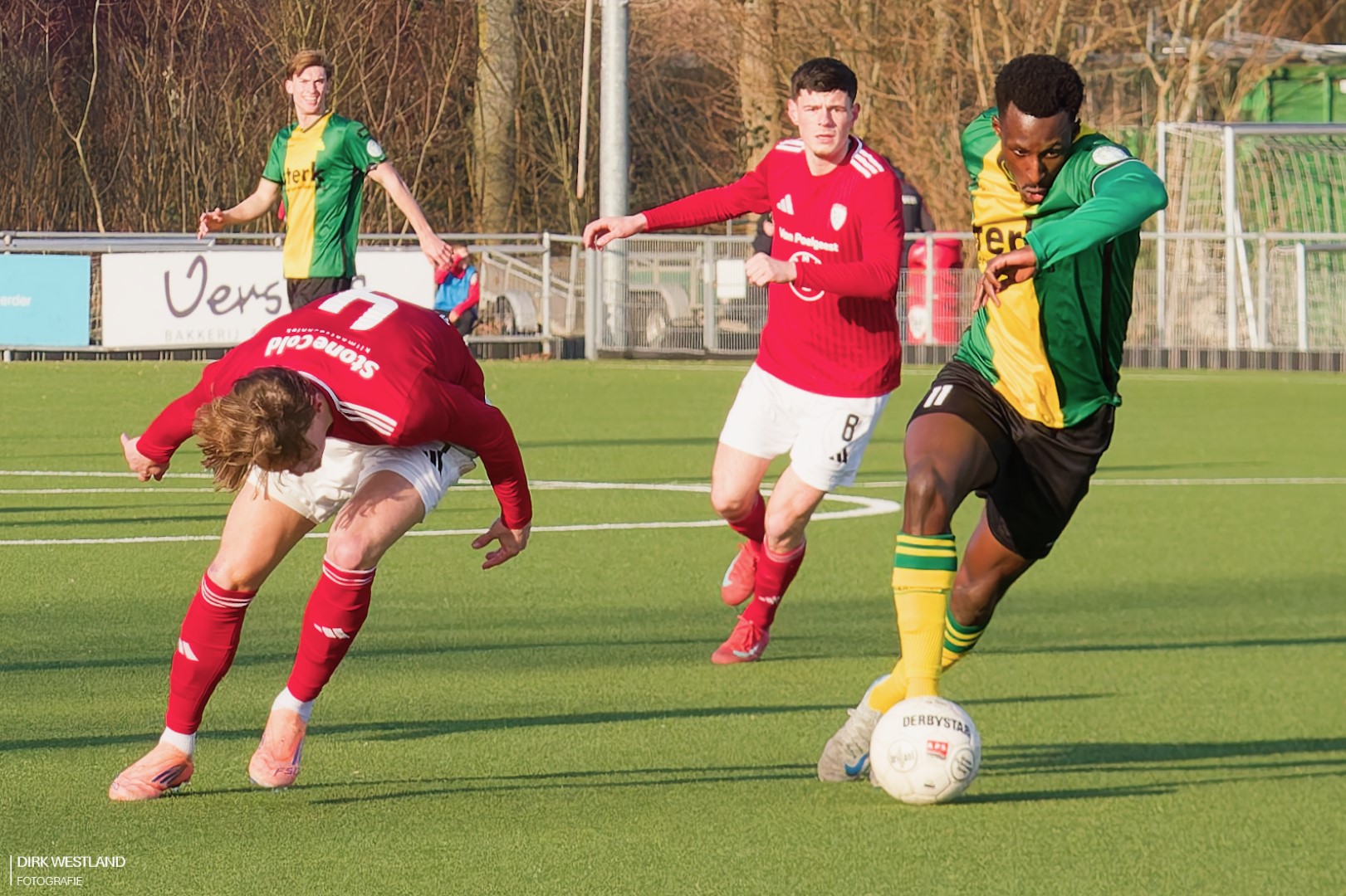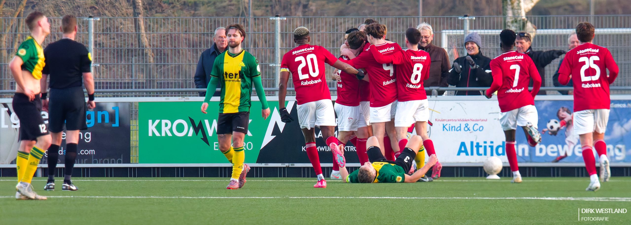 Robbie Schipper wordt klaargestoomd om in te gaan vallen. Sergio Kozjak raakt echter wat aangeslagen bij een uiterste poging verder onheil te voorkomen. Het lukt hem, maar dus wel ten koste van een kwetsuur. Gelukkig weet Sergio door te zetten en de wedstrijd uit te spelen.