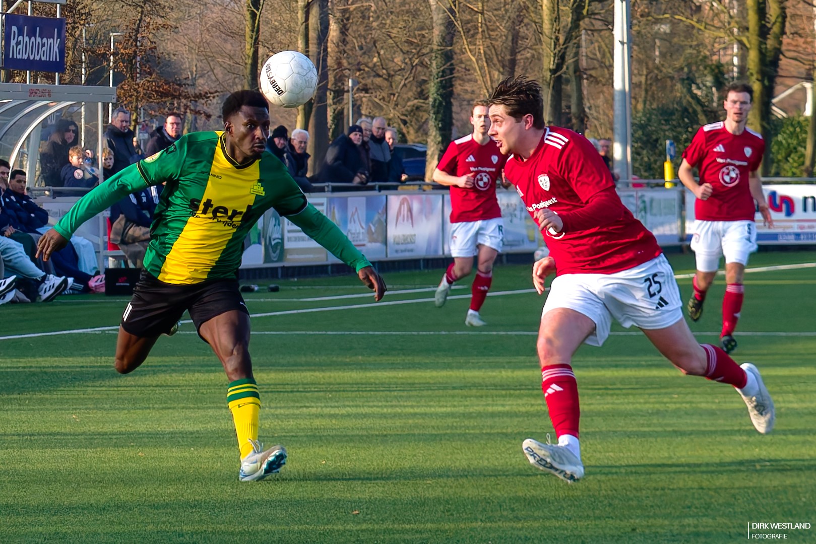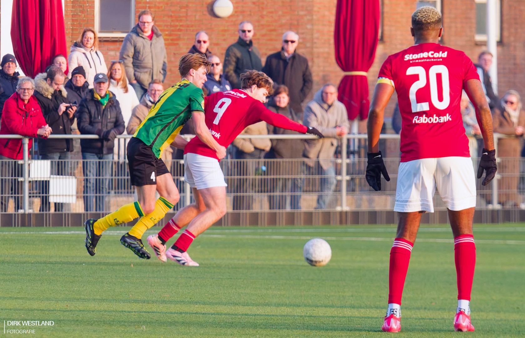 Een diepe loopactie van Mike de Niet dan met een dikke twintig minuten gespeeld. De lob die De Niet in gedachten had pakt wat ruim uit en daarmee is ook dat gevaar weer bezworen.