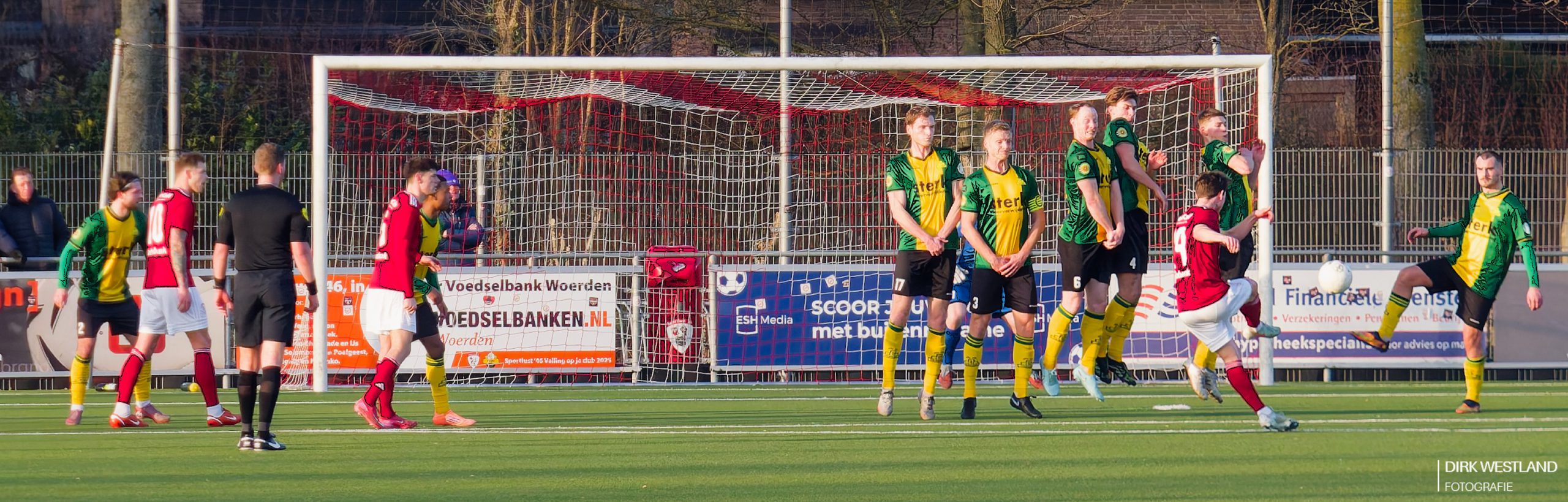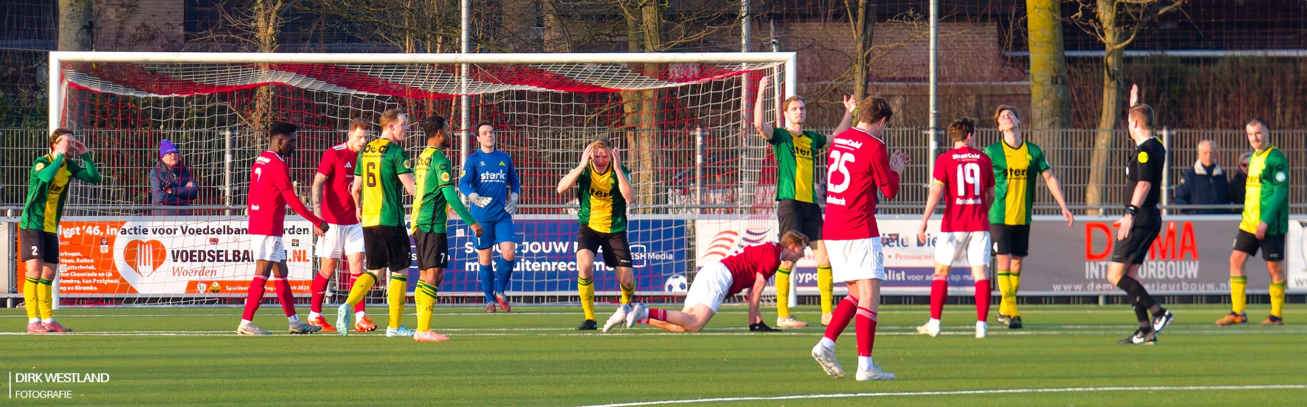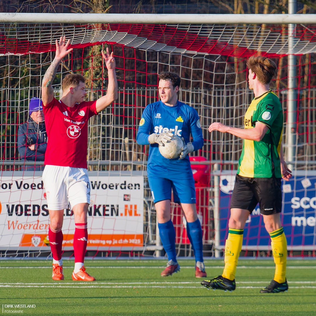 “Bal uit! Bal uit!” wordt er volop geroepen als Mitchell van der Veer op het middenveld neergaat met een kennelijke hoofdblessure. Opmerkelijk genoeg geeft het eigen Sportlust daar géén gehoor aan en voetbal lustig verder op jacht naar die gelijkmaker. Ook arbiter Martin Wever weigert af te fluiten en ook de grensrechter aan de tribunezijde lijkt niet aan te willen geven dat er iemand met een hoofdblessure op het ijskoude veld ligt te creperen. Van der Veer moet eerst opgelapt worden voor hij verder kan. Hij lijkt er vooralsnog een pijnlijke nek aan over te hebben gehouden als hij naar de kant wordt geholpen door de Woerdense verzorging. Een opmerkelijk momentje.