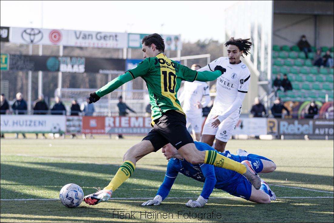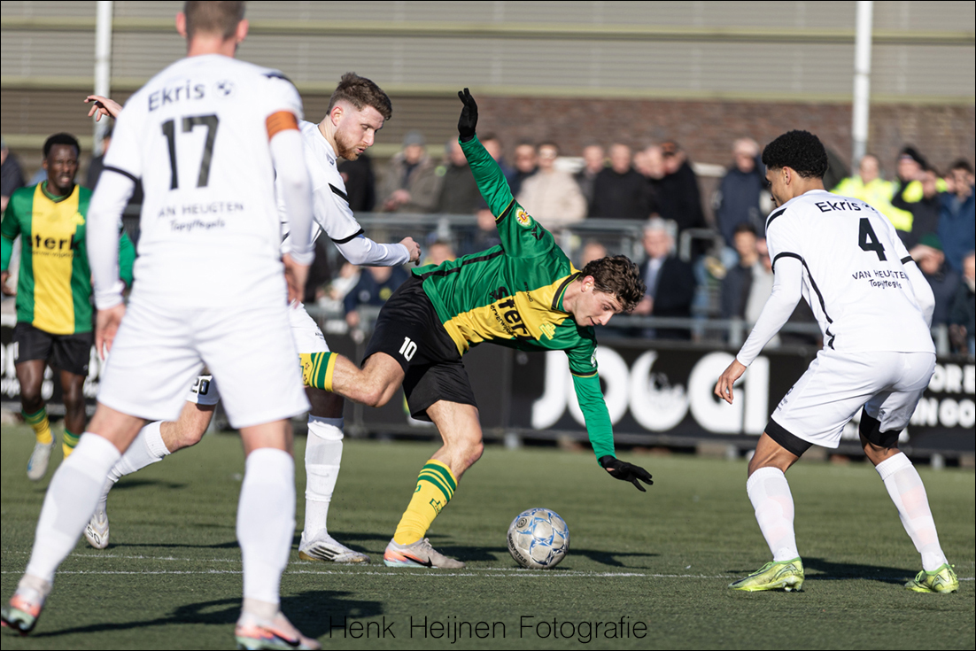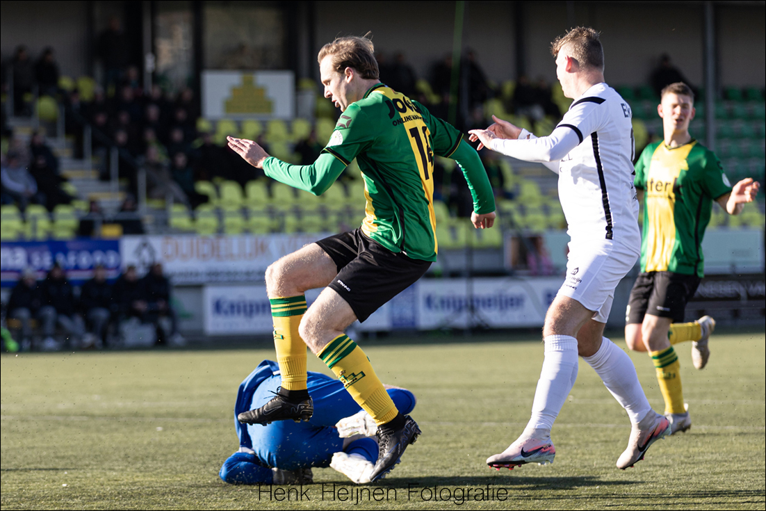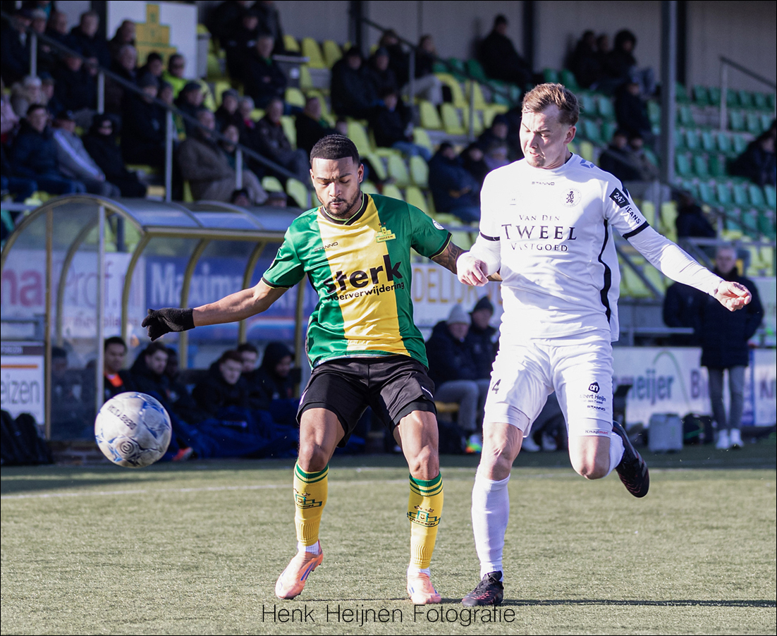 “De eerste helft hebben we een grote kans met Jostein Ohm die alleen op de keeper af mag na een fantastische actie. Dan is het ook weer ‘net niet’! We hebben ook een periode gehad dat die ballen er wél in gingen, toen leek het als vanzelf te gaan en je ziet nu dat juist dat laatste schot er aan ontbreekt, dat laatste tikkie, zodat iedereen ook weer wat vrij in het hoofd wordt dat ze het nog kunnen! Ik heb het gevoel dat we daar als groep een beetje tegenaan hikken. We krijgen genoeg kansen maar we laten het net niet bollen en dan zijn er die momenten waarop een tegenstander dat dan wel doet. Dan loop je dus achter de feiten aan en dat kunnen we ons in deze divisie niet permitteren, we moeten gewoon overal keihard voor werken…”