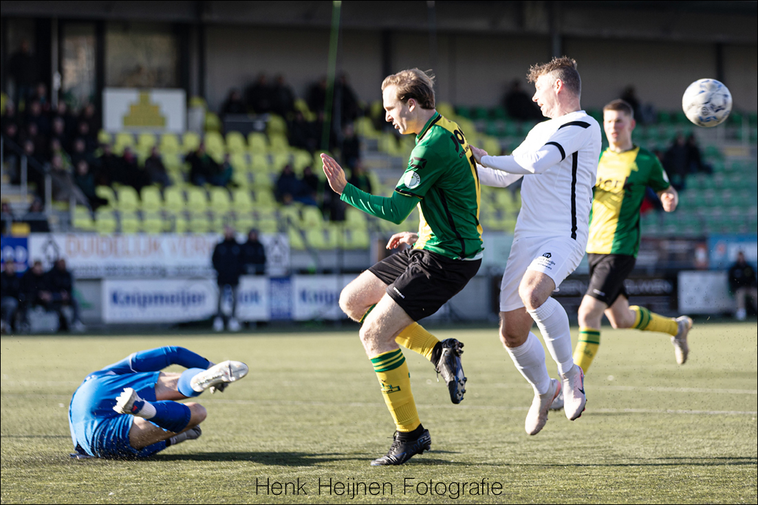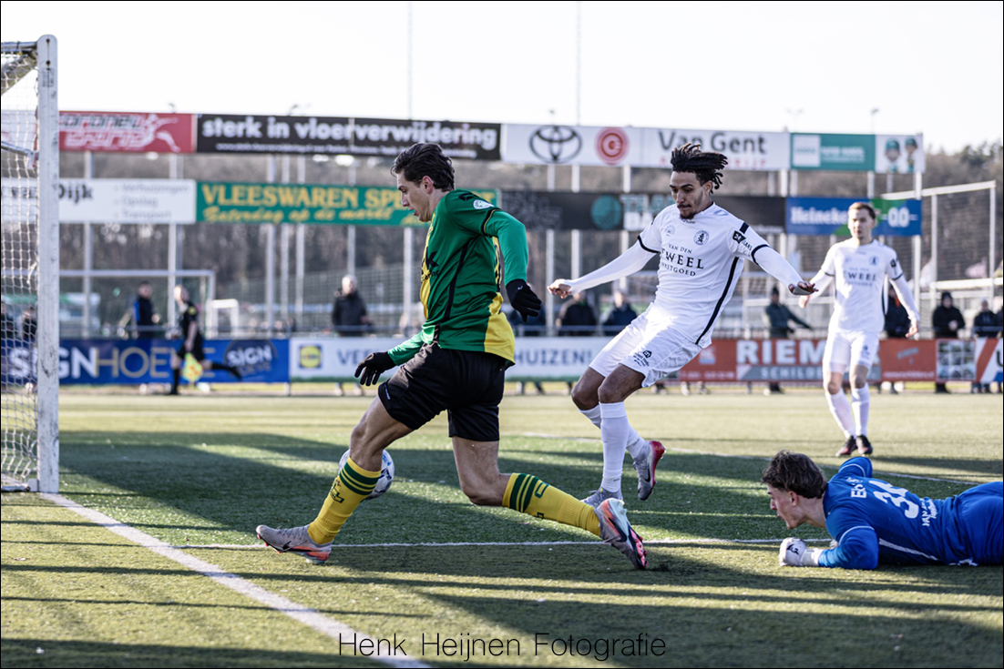 De wedstrijd is gelopen. Dat voelen vriend en vijand op hun klompen aan – als er nog wat gevoel in hun tenen zou zitten met deze kou. Een inzet van Victor van der Linde wordt nog bijna in de vlucht aangetipt door de invliegende Veenstra, tot onze opluchting had Veenstra zijn nagels net geknipt en gaat de bal dus voorlangs naast. Ook Raymond Huizing gaat maar eens op avontuur en ziet zijn inzet rakelings voor de lat boven Pabon scheren. Ibrahim Christos mag dan ook nog wat voetbalavontuur aan zijn weekend toevoegen van Van Hunenstijn en hij vervangt Jesse Buitenhuis die hij graag voor belangrijker zaken spaart in zijn race naar de titel.