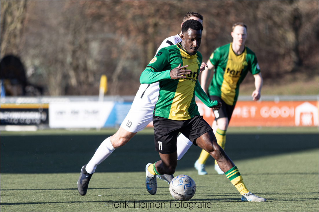 Beide ploegen lijken de kou van zich af te willen voetballen en maken er een levendige openingsfase van. Het is Sparta Nijkerk dat voor het eerste wapenfeit zorgt als Omar el Ghazouani er over de flank vandoor gaat en gevaarlijk voor Pabon opdoemt. De hoek is lastig, Pabon verkleint zijn doel uitstekend en weet de inzet te pareren. Maar dat is toch wel even schrikken in de tweede minuut.