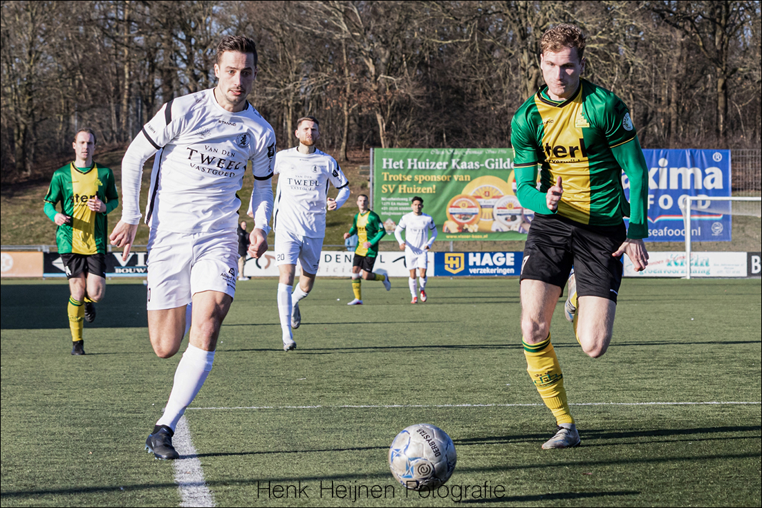 Huizen voetbalt tegen beter weten in door. Jaylon trekt nog maar eens een keer aan zijn stutten en trekt weer naar binnen. Voor een verdediger ontplooit hij toch wel veel aanvallend potentieel! Zijn inzet mist echter de noodzakelijke cocktail van venijn en finesse die noodzakelijk is om Ischa Bouwman te kunnen verschalken.