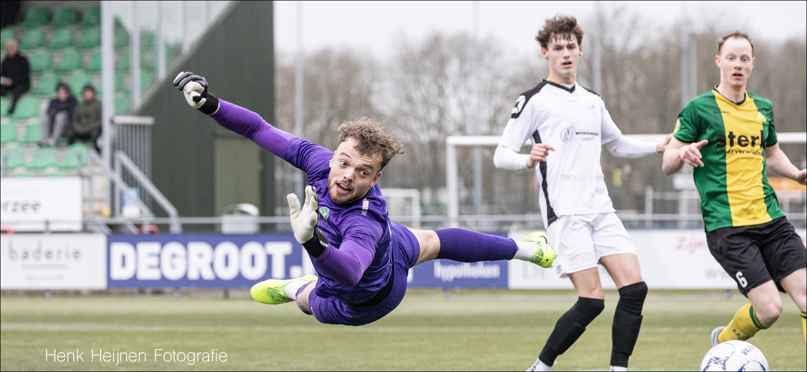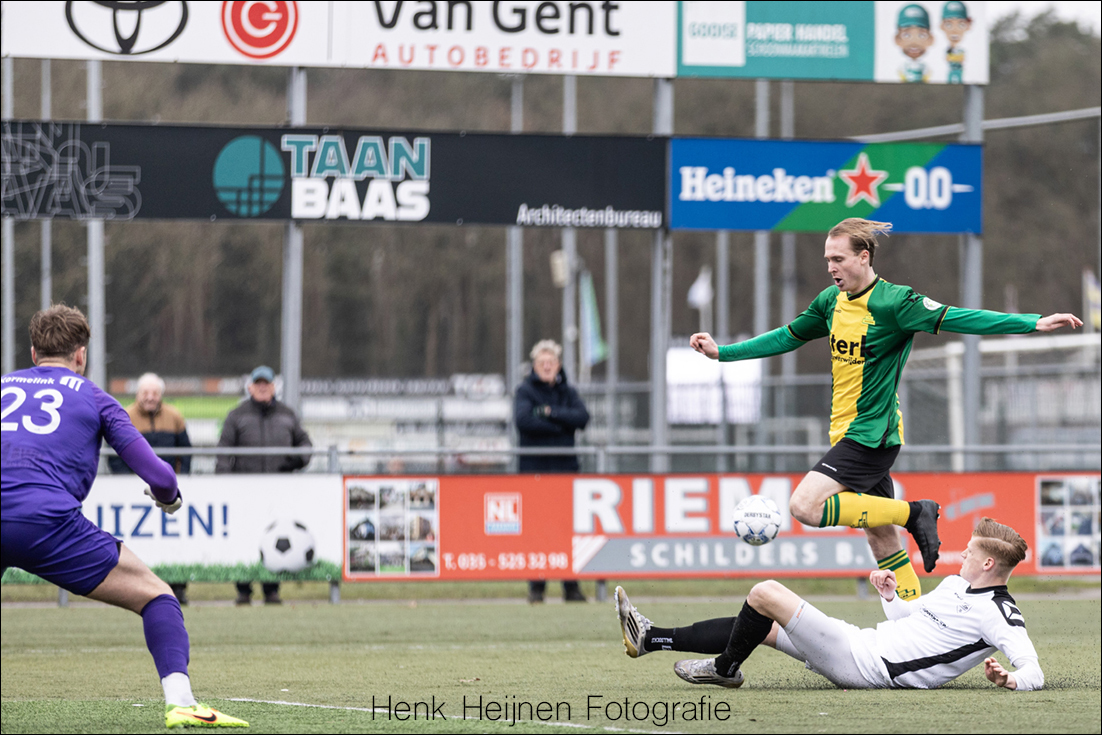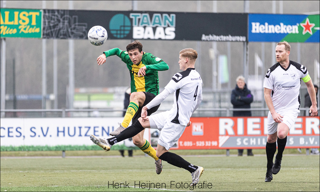Een foutje achterin waar Tim Vrakking zich wat simpel laat aftroeven door Sam Holsink. Holsink denkt de bal simpel binnen te kunnen tikken, maar had buiten de man gerekend die eigenlijk met een gele ‘S’ op de borst had kunnen staan keepen. De reactie is fenomenaal en behoedt Huizen andermaal voor de gelijkmaker.