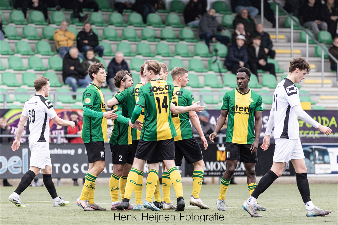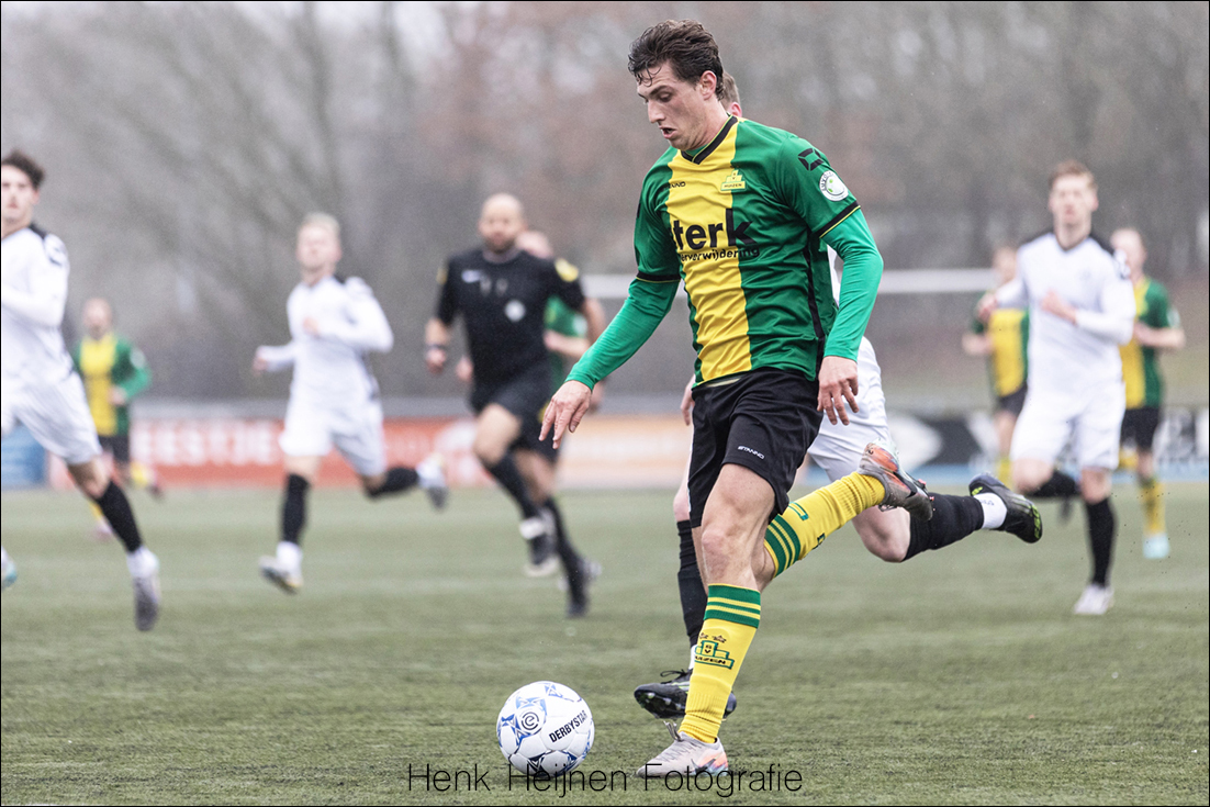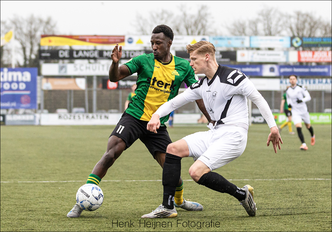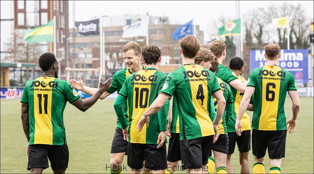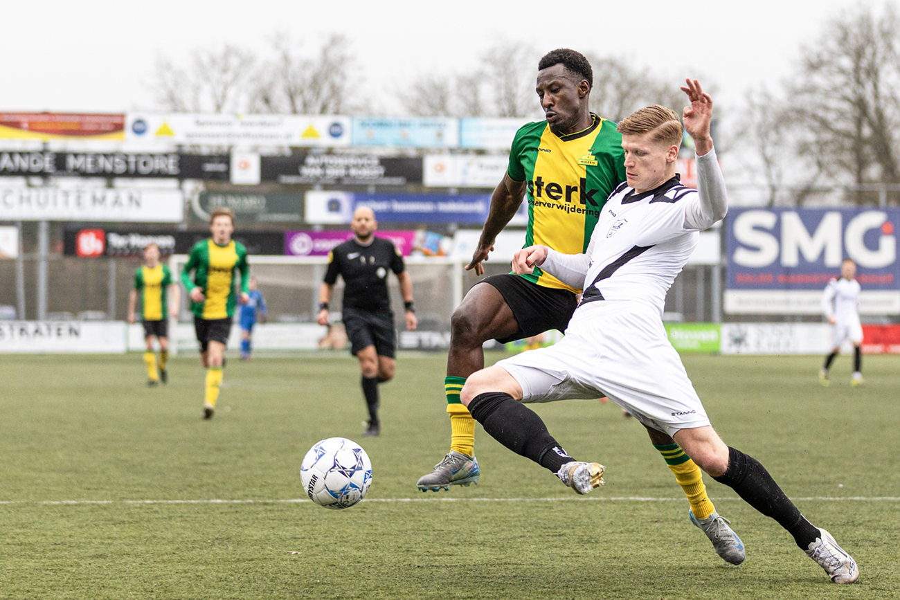 Natuurlijk blijft de slotfase op deze manier spannend. Want wát als HSC’21 er toch nog een aansluitingstreffer uit zal weten te persen? Dan konden het toch nog wel eens tien hete minuutjes gaan worden. Een voorzet van Kaptein komt goed voor en opnieuw laat Vonk een goede kopkans liggen. Lars van Huisstede en Dennis Lamme worden dan gewisseld voor Joshua Lo-Asioe en Dani Vivié. Verse krachten die het slotoffensief van HSC’21 moeten gaan breken. Met de snelle en verse Vivié kan er wellicht nog wat extra gevaar worden gesticht en de routine van Lo-Asioe zal op dat middenveld zeker van pas kunnen komen. Wellicht ook uit een corner nog één van zijn befaamde knallende kopstoten? Zouden die corners misschien toch nog van pas kunnen komen…