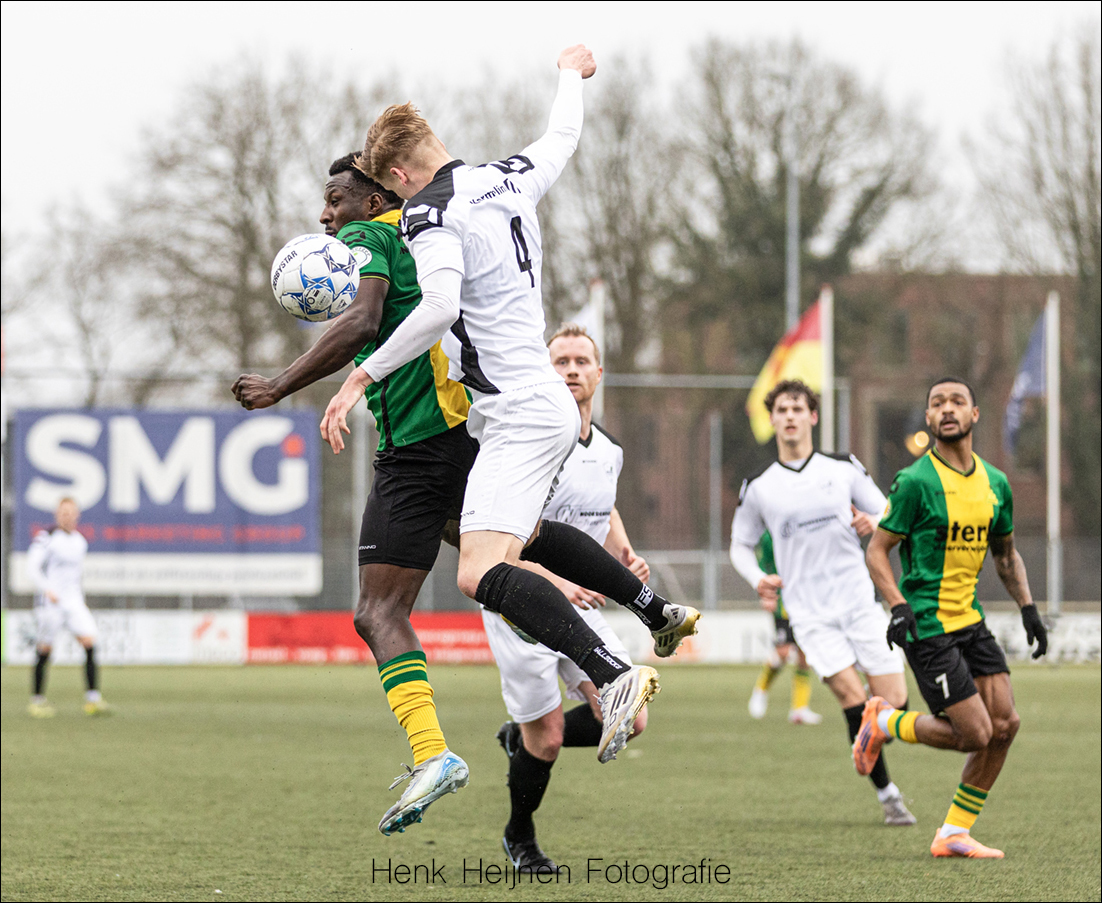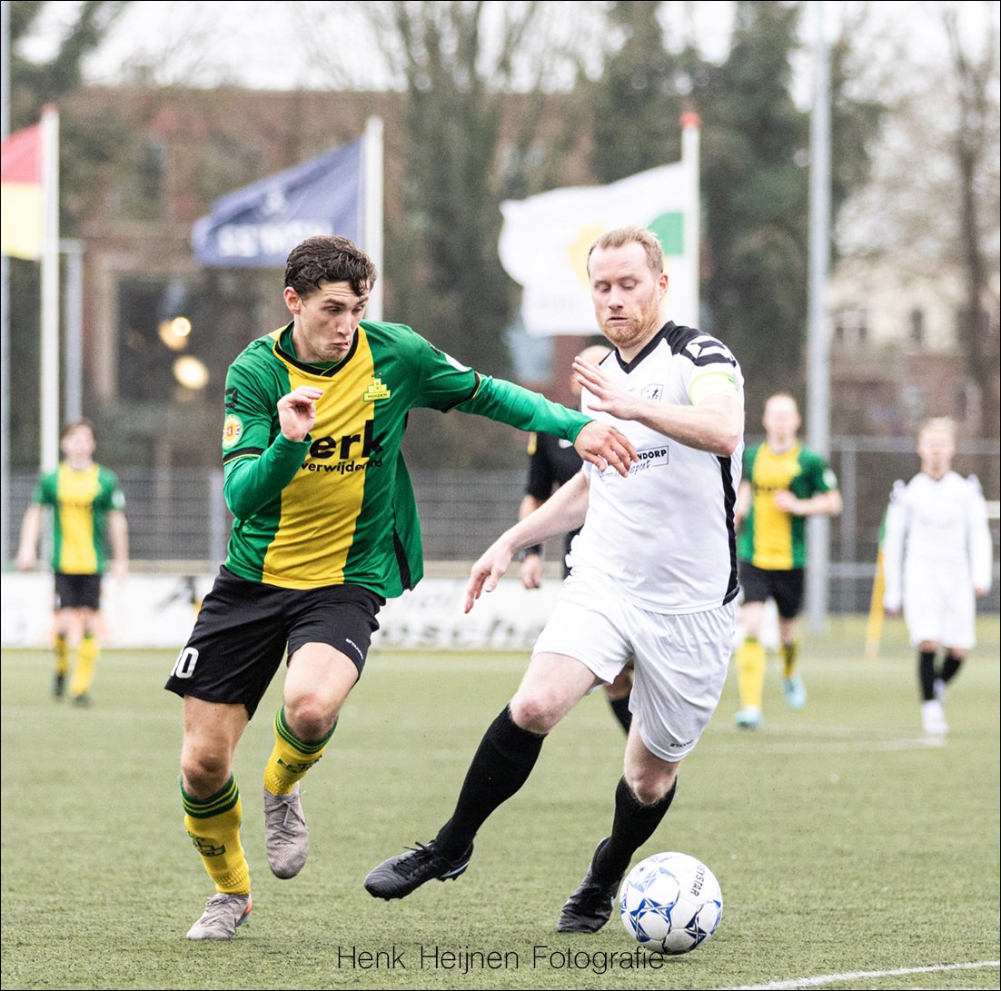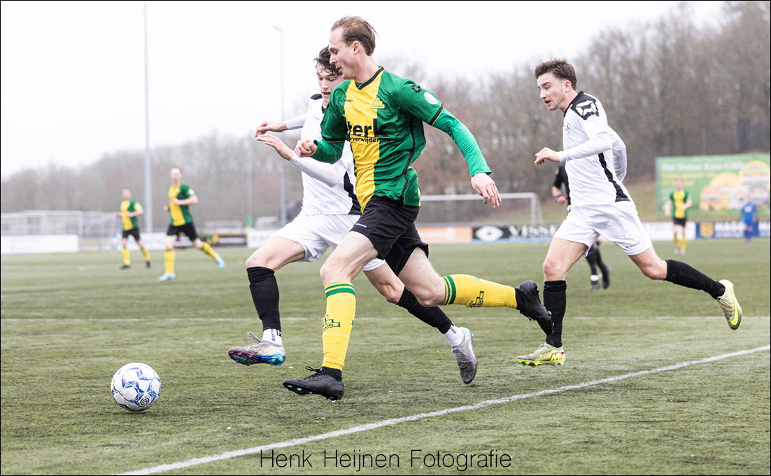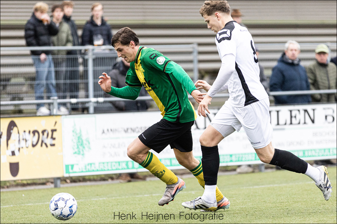 Tijmen Bakker gaat dan met volle inzet een duel op het middenveld in. Spijkerhard, maar fair. Het kost Mats Klein Poelhuis even een blessure die enige verzorging behoeft. Gelukkig kan Mats de wedstrijd wel gewoon vervolgen. De inzet van Tijmen tekende wel het karakter en de wilskracht van onze mannen.