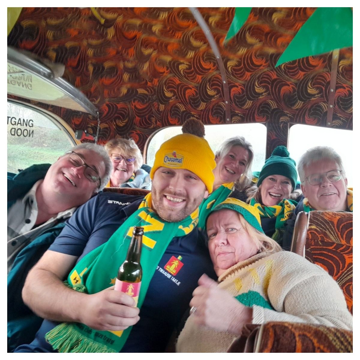 Met de iconische gele Arab-bus vertrok een enthousiaste groep van zo’n 30 supporters richting Scherpenzeel, voor de uitwedstrijd tegen de oude ploeg van onze hoofdtrainer Rob de Groot. Een alternatieve rit met sfeer, gezelligheid en vooral heel veel clubtrots!